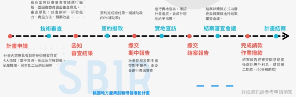 桃園市SBIR申請日期是每年4月中旬開始,收件至5月中,4月時會開辦多場計畫書撰寫說明會,請參考